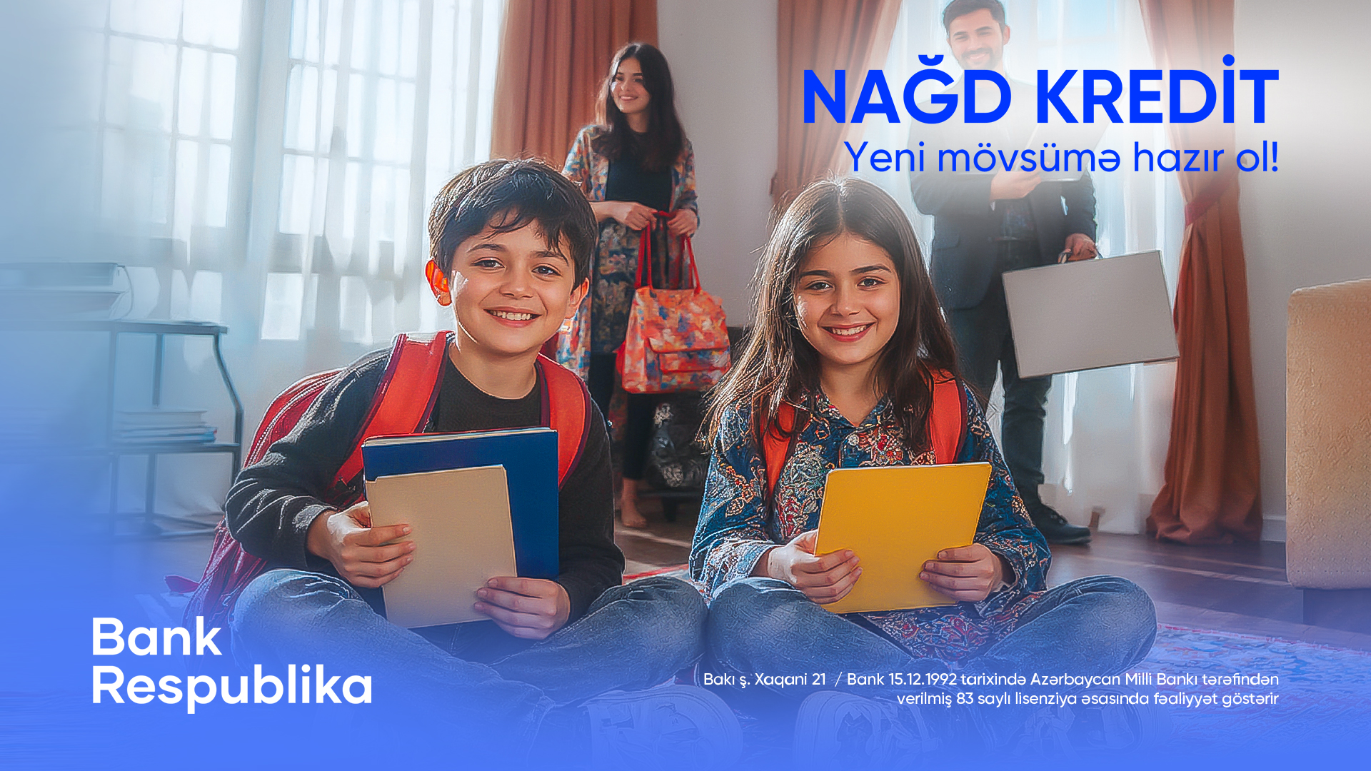 Bakı, 03 sentyabr, 2025. Yay tətili başa çatdı, indi isə yeni planlar, yeni hədəflər və yeni başlanğıclar vaxtıdır. İstər iş həyatına dönüş, istərsə də övladların məktəbə hazırlığı olsun – bütün bu xərcləri qarşılamaq üçün Bank Respublika müştərilərinə sərfəli şərtlərlə nağd kredit imkanı təqdim edir: