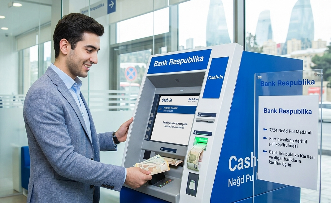 Cash-in Bu xidmət, müştərilərin banka getmədən, ödəniş terminalları və ya xüsusi bankomatlar vasitəsilə öz kart hesablarına anında nağd pul mədahil etməsinə şərait yaradır.