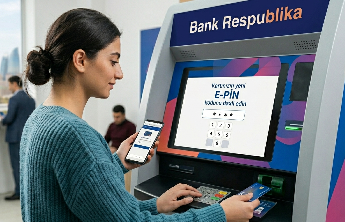 Pin change Müştəri şəxsən özü, ona rahat olan vaxt PİN-i Bank Respublika-nın bütün bankomatlarında dəyişə bilər. Kodu dəyişmək üçün bankomatın menyusunda aşağıdakı əməliyyatları seçmək kifayətdir: