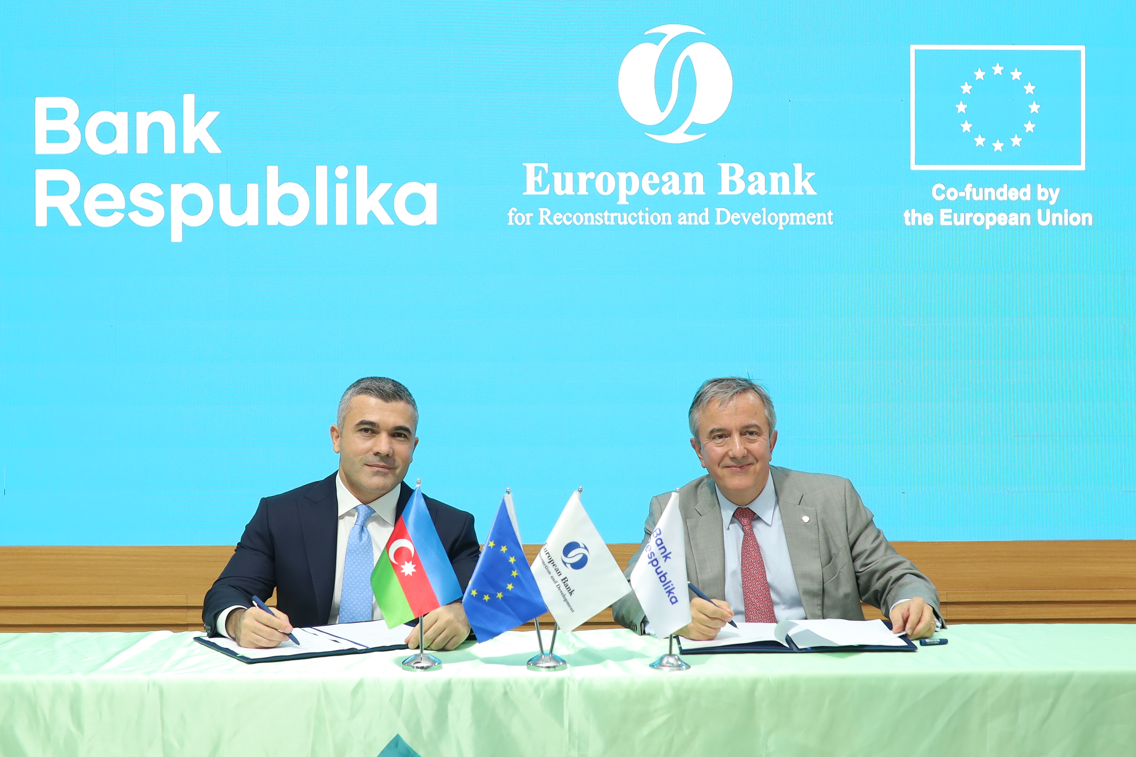Baku, November 20, 2024. During the 29th session of the Conference of the Parties to the UN Framework Convention on Climate Change (COP29), Bank Respublika, one of the largest commercial banks in the country, and the European Bank for Reconstruction and Development (EBRD) signed a loan agreement to finance green projects in Azerbaijan. The loan was provided in cooperation with the European Union as part of the Competitiveness and Inclusion Program for SMEs in the Eastern Partnership countries.