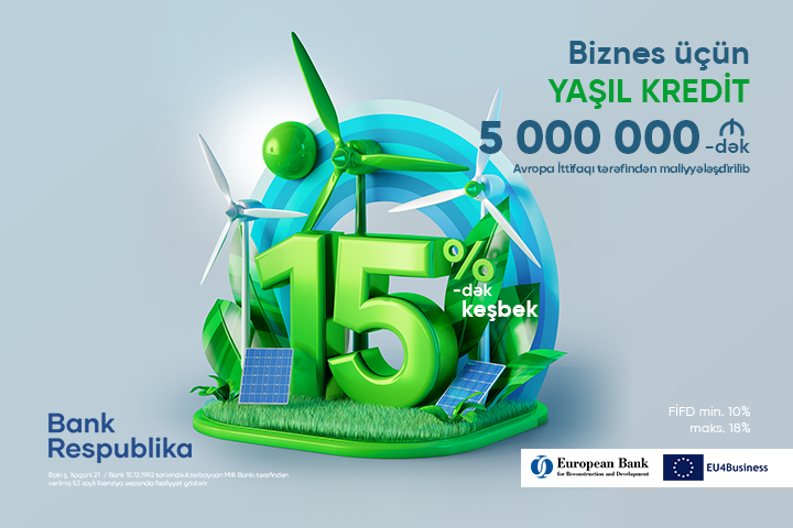 Bakı, 19 fevral, 2025. Ölkəmizdə real sektorun inkişafına daim dəstək olan Bank Respublika, innovativ yanaşmalarını davam etdirərək ilk dəfə olaraq sahibkarlar üçün “Yaşıl Kredit” məhsulunu təqdim edir.