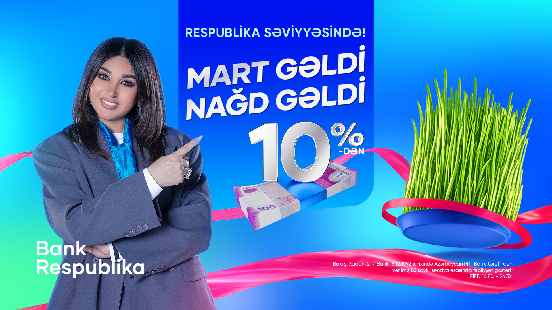 Уже сейчас вы можете обратиться в любой филиал Банка Республика или подать онлайн-заявку на официальном сайте и получить возможность оформить выгодный наличный кредит до 50 000 манат без обеспечения, по ставке от 10% и сроком до 59 месяцев.